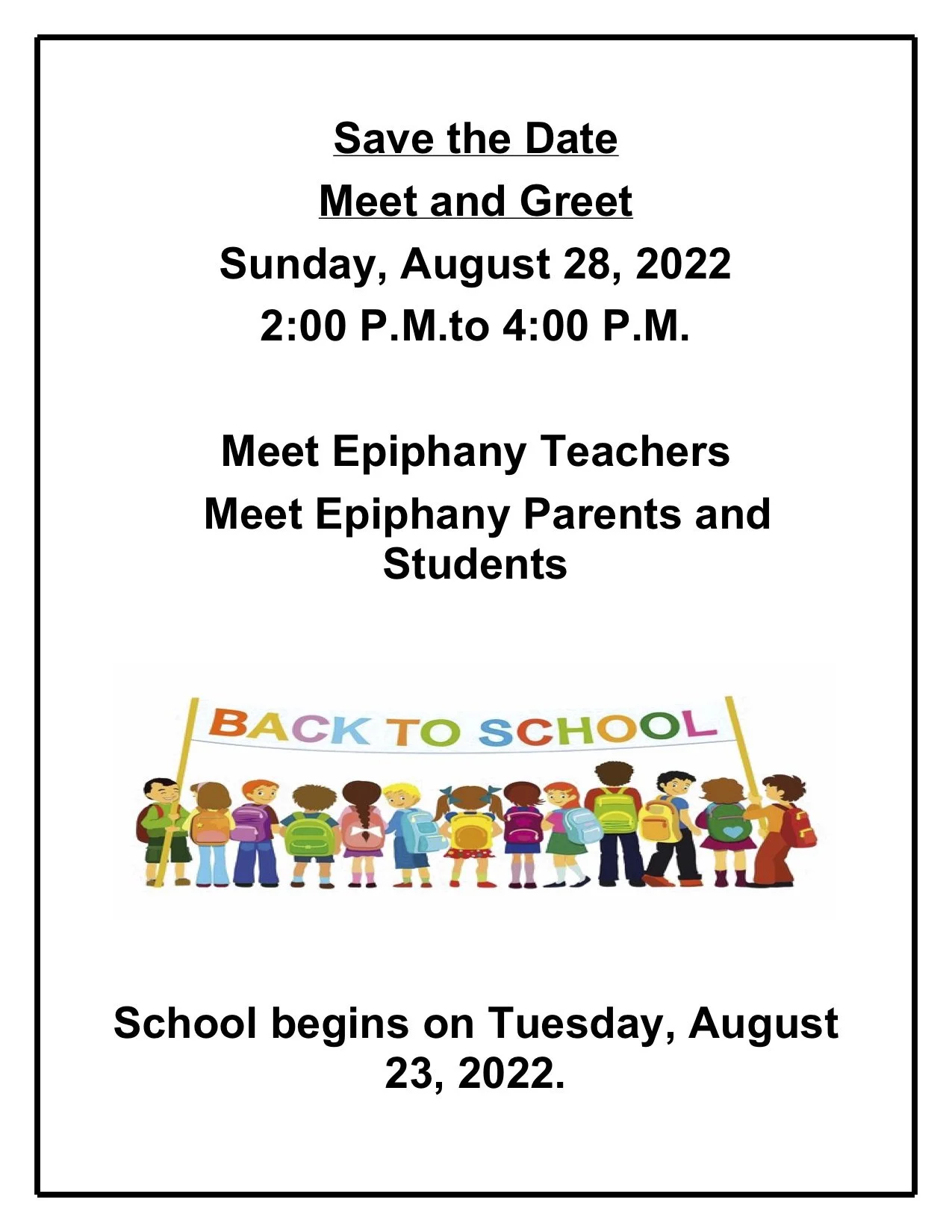 July 27, 2022 Epiphany School Back to School Meet & Greet July 27, 2022 Epiphany School Epiphany School