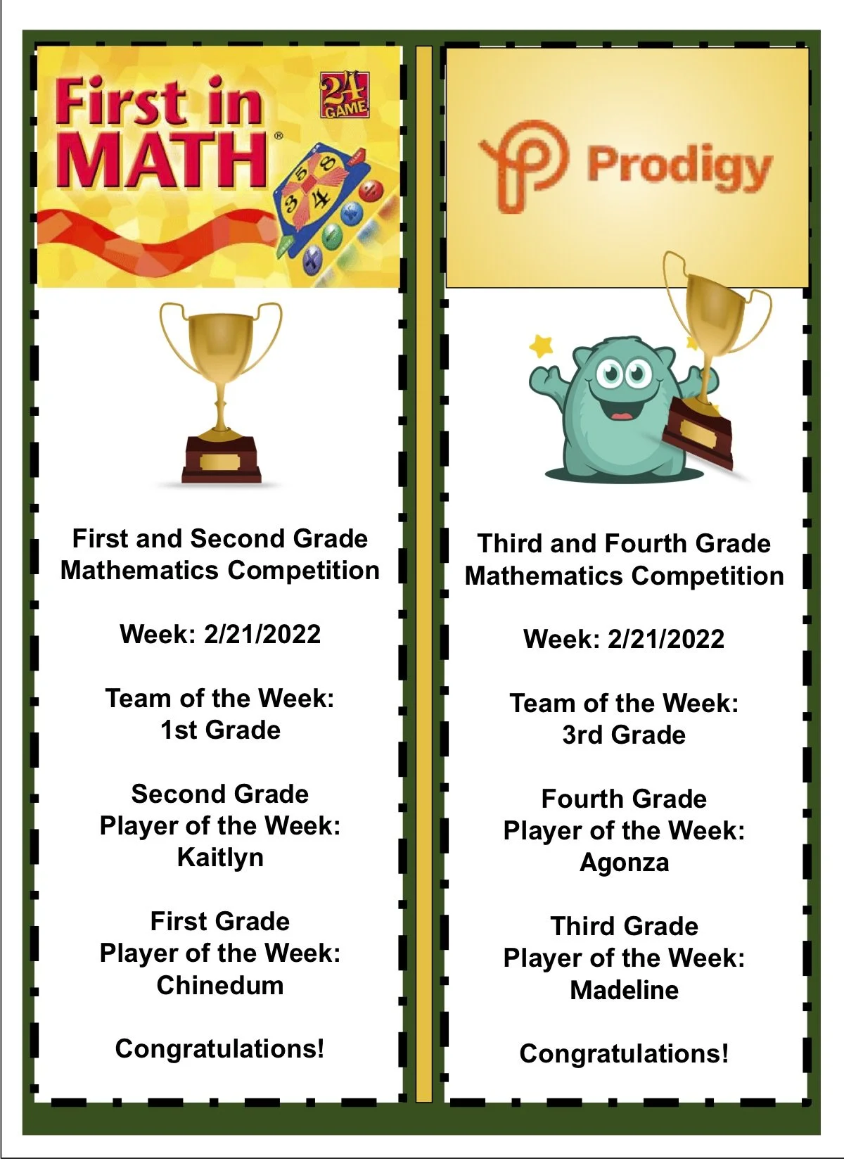 February 23, 2022 Epiphany School First in Math & Prodigy 2.21.22 February 23, 2022 Epiphany School Epiphany School